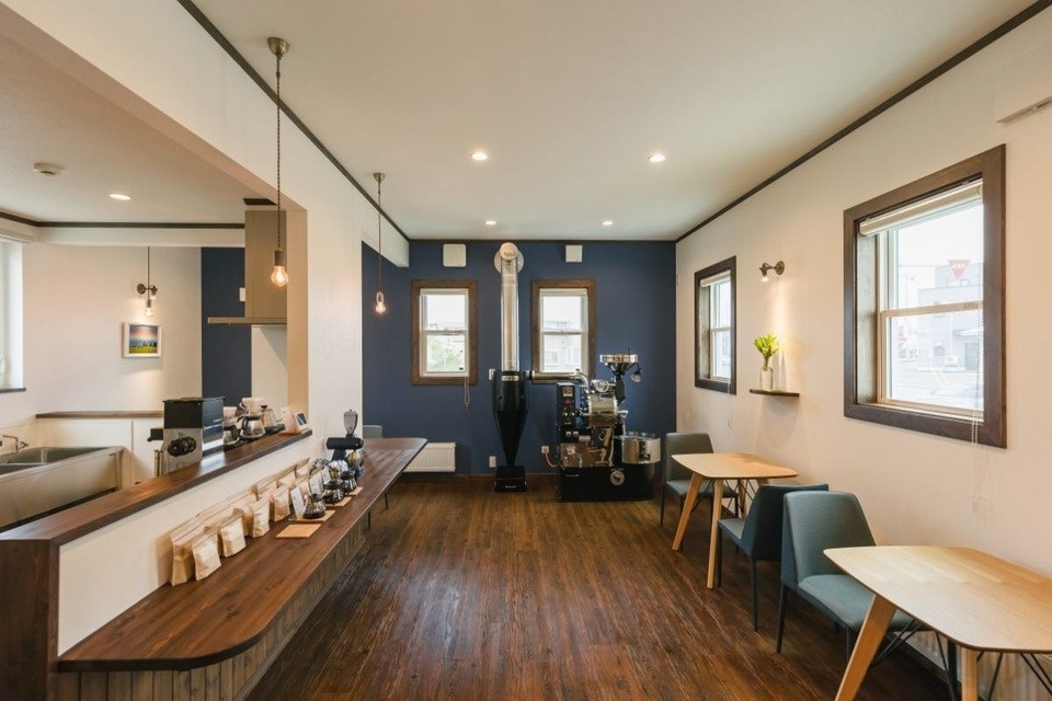 そう考えた K さん夫妻は、北海道内の住宅会社を探し、帯広の cube チセに連絡。移住先の物件情報、店舗併用住宅のプラン提案などを受けて、中札内村に住宅兼店舗を建築、 7 月に珈琲豆の製造販売とインターネット販売、そしてカフェも併設する「トカプコーヒー」を開店させました。