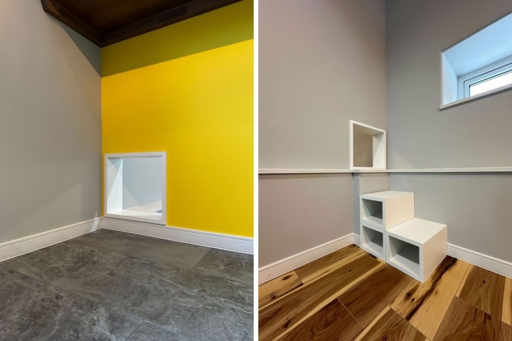 壁の下から突然猫が出てくる、遊び心が楽しい設計 札幌市T邸/奥野工務店
