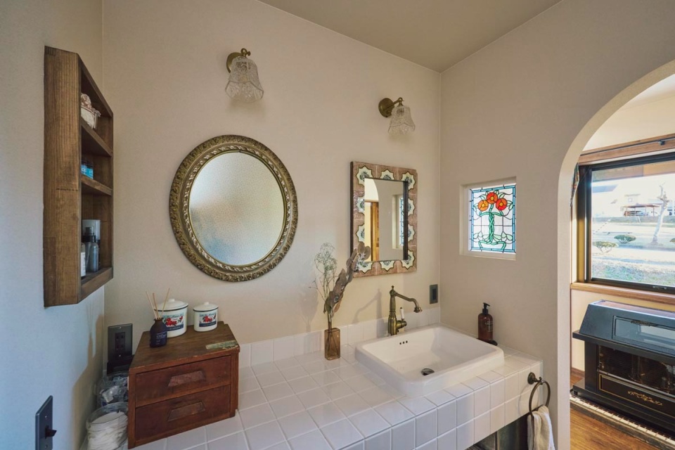 アンティークのミラーが主役の造作洗面台 芽室町K邸/カントリーヴィレッジ