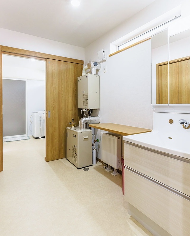 メインの暖房と給湯は灯油熱源。冬はパネル式セントラルヒーティング、春と秋はビルトインタイプの冷暖房エアコンと季節によって暖房方式を使い分けています。換気は排気のみを機械で行う第3種換気システム。
