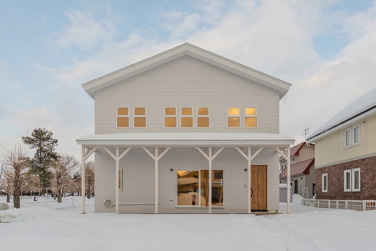 東神楽町の閑静な住宅街に、三角屋根に規律的な窓の配置、屋根付きのポーチがあるサーファーズテイストのS邸が完成しました。北海道の暮らしに合わせて、好きなデザインと住み心地を両立した一邸です。