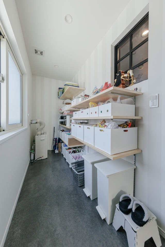 上部に高窓がある明るいパントリー 帯広市/ヨツモクサイド