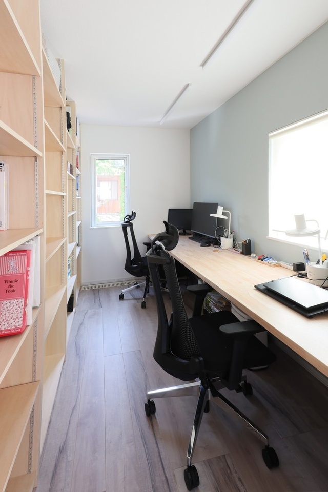造り付けの稼働棚とデスクのある家族共有の書斎 札幌市Yさん/(株)キクザワ