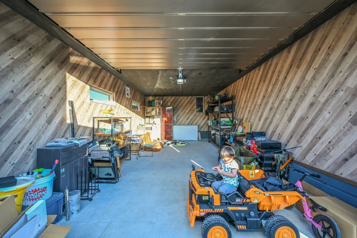 カルフォルニア系デザインのガレージが欲しかったご主人。アーケンの藤原社長に相談し、旭川の積雪荷重にも耐える、しかもデザインの良いガレージを購入しました。スノーボードやスキーなどのアウトドア用品は壁に設置、保管できます。電動工具なども綺麗に収納されています。自転車やキャンプ用品も壁に掛けられます。