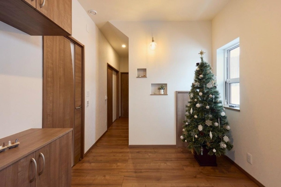 表玄関はツリーを飾っても余裕の広さがあります。