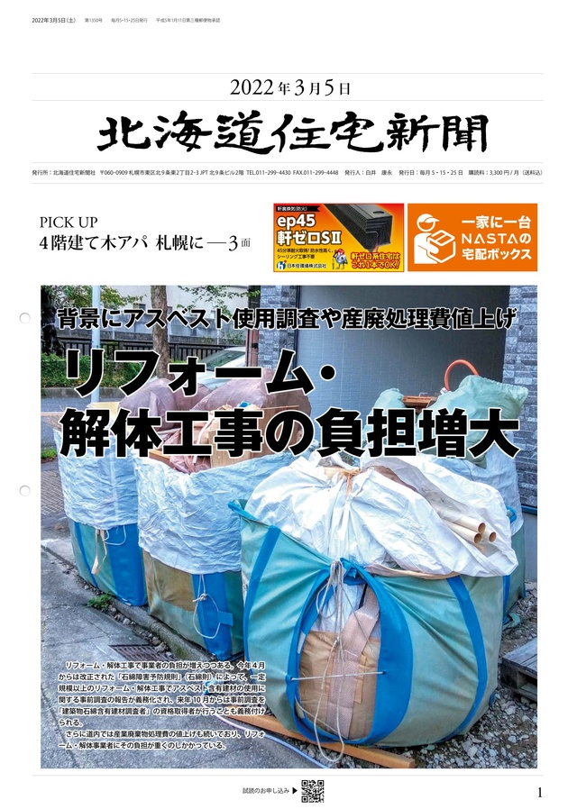 また、札幌市内の産業廃棄物処理費の値上がりについては、「ここ2~3年で上がっており、つい最近も値上げの打診がありました。産廃処理費はお客様に負担をお願いするところなので、今は張り替えを勧めにくい時期です」と、話していました。