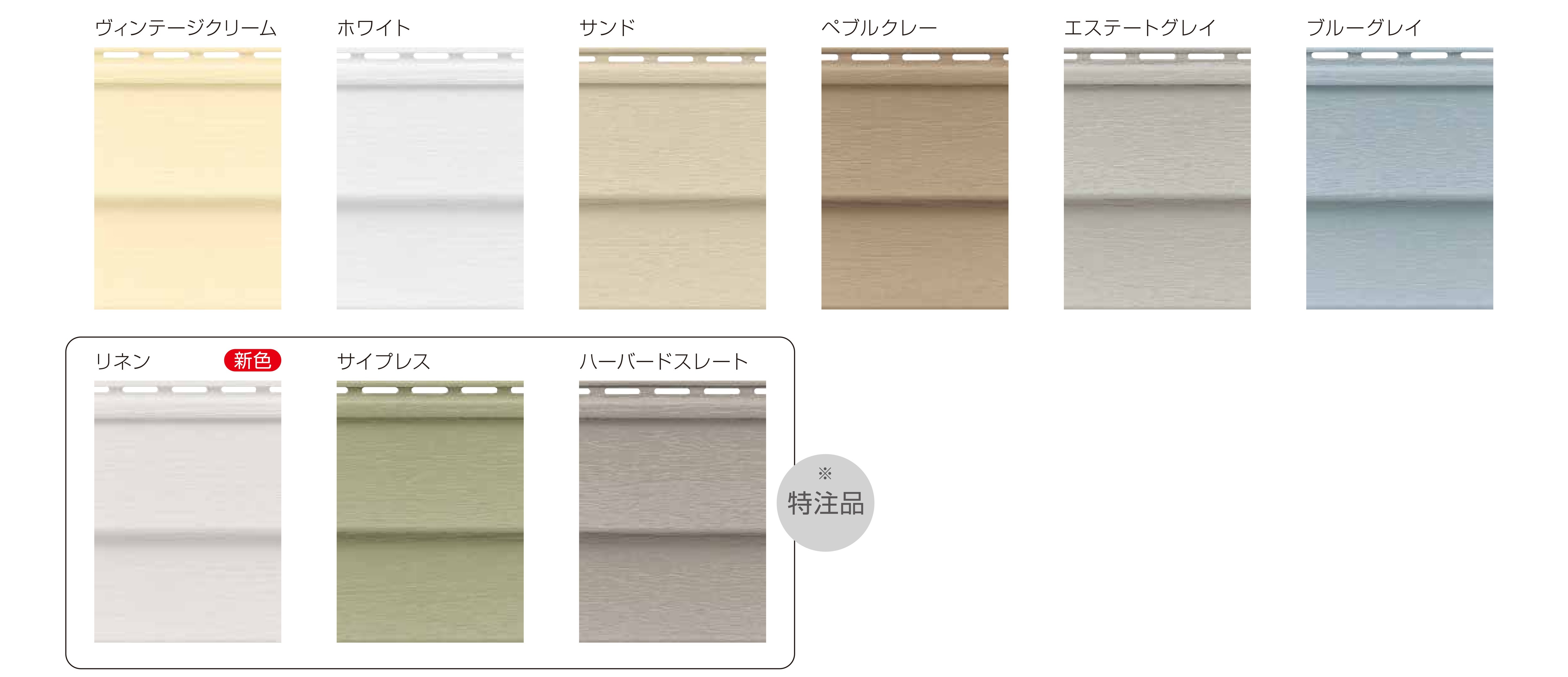 塩化ビニル樹脂製。樹脂サッシと同じ原料。大ざっぱに言うとプラスチック製で、雨風や紫外線による劣化に強い。国内で販売している会社が少なく、新築戸建での採用はごく少数。外壁リフォームでは有力な選択肢の1つ。塗装品じゃないので塗り替え不要。また、サイディング同士の継ぎ目にシーリングを使わない「オープンジョイント工法」が標準工法となっており、シーリング補修も不要。メンテナンス面でお客さんの財布にやさしい。