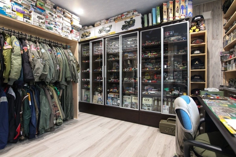 ご主人「私の要望で作ってもらった趣味の部屋です。ジーブのミニカーだけで約1000個くらいあります。趣味の部屋からガレージに直行できるように、この家には玄関が2つあります。ガレージの中に趣味の部屋を作るということも当初検討しましたが、やはり北海道・東川の冬は寒いですから、室内にして正解だったと思います。