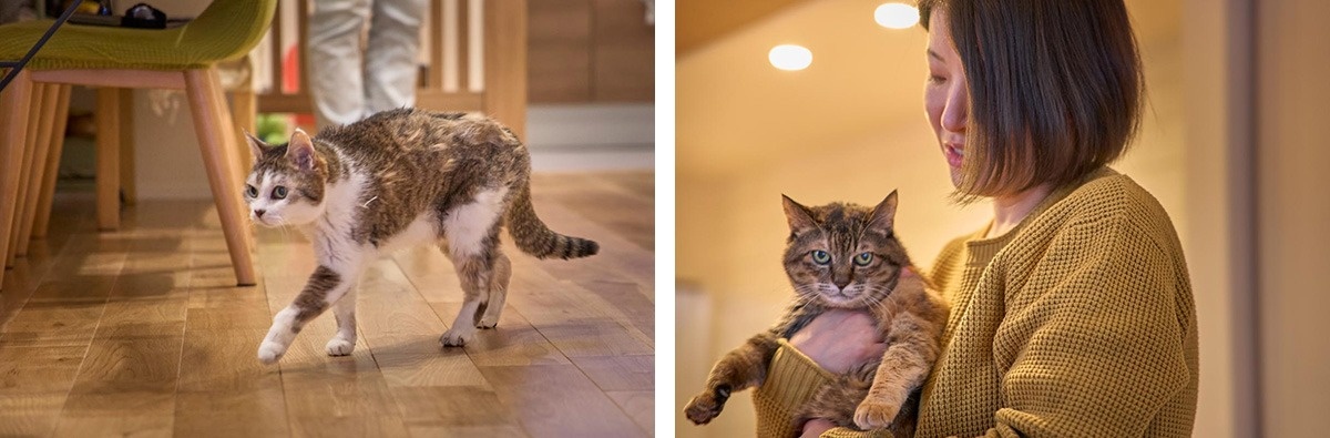「猫たちはすぐ慣れて、キャットウォークも毎日駆け回っています。床暖房も気に入っていますね。家族全員がリビングで一緒に心地よく過ごせるようにと思っていたので、嬉しいです」
