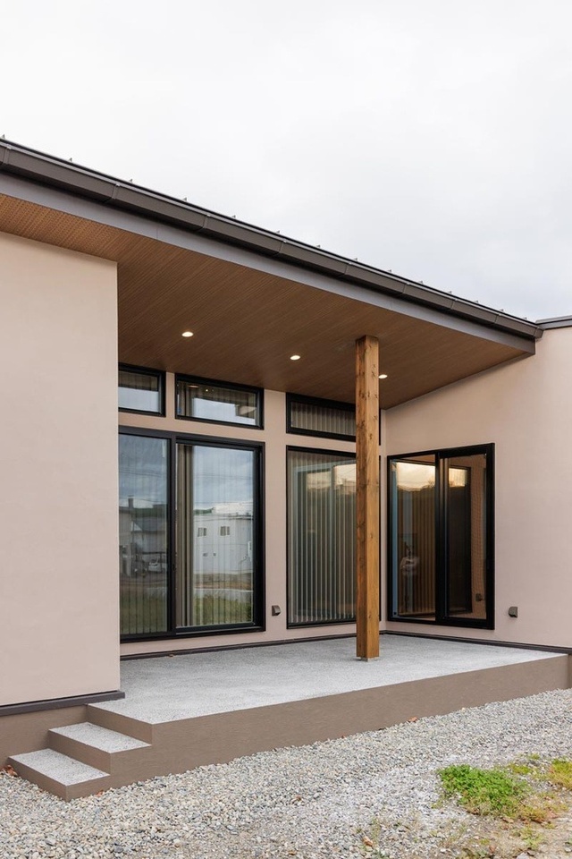 芽室町内の静かな住宅街。建物の南面いっぱいに13.65メートルのテラスが広がる平屋住宅に暮らすのは、ご夫婦そろってアウトドア好きというSさんです。