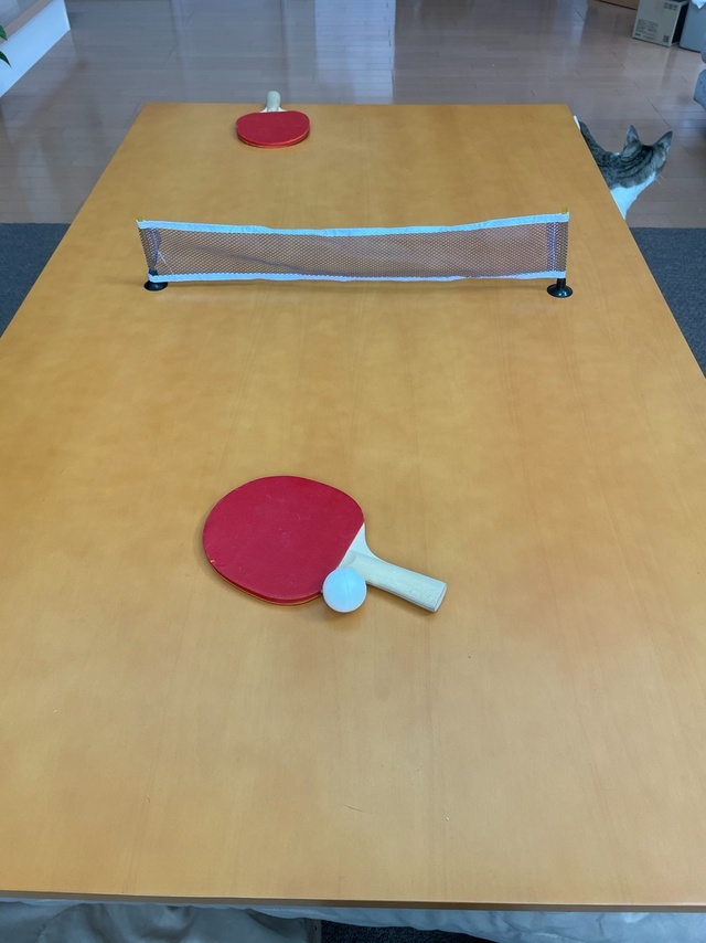 コタツでも食卓でも、幅150cmくらいのテーブルがあれば、100均でも手に入る「卓球セット」でテーブル卓球ができます。180cmある食卓テーブルだと、かなり本格的なプレイが楽しめます。