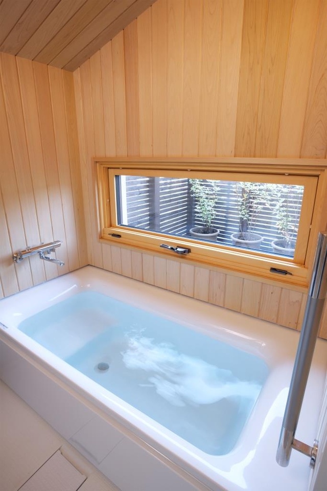 お風呂はリンナイの「マイクロバブルバスユニット内蔵ふろ給湯器」が取り付けられるTOTOのシステムバスを選択。温浴効果の高い泡風呂に浸かれば身も心も安らぎます。