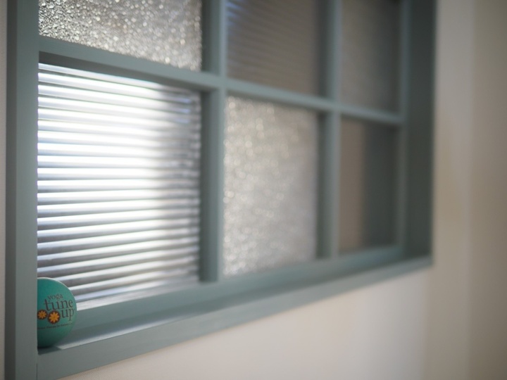 室内窓には様々なデザイン・ガラスを用いた格子窓を採用。レトロな雰囲気は手作りなはです。