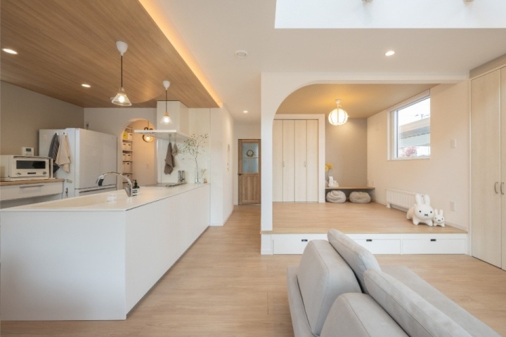 吹き抜けにアーチの小上がり、細部まで好きを実現 札幌市M邸/イネスホーム