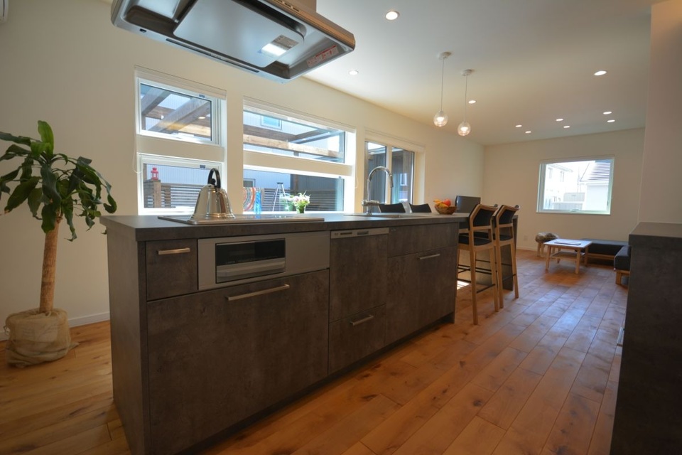 LDKの中央に、オーダーキッチンがありました。渋谷建設は函館で唯一、オーダーキッチンのブランド「キッチンハウス」と提携していて、