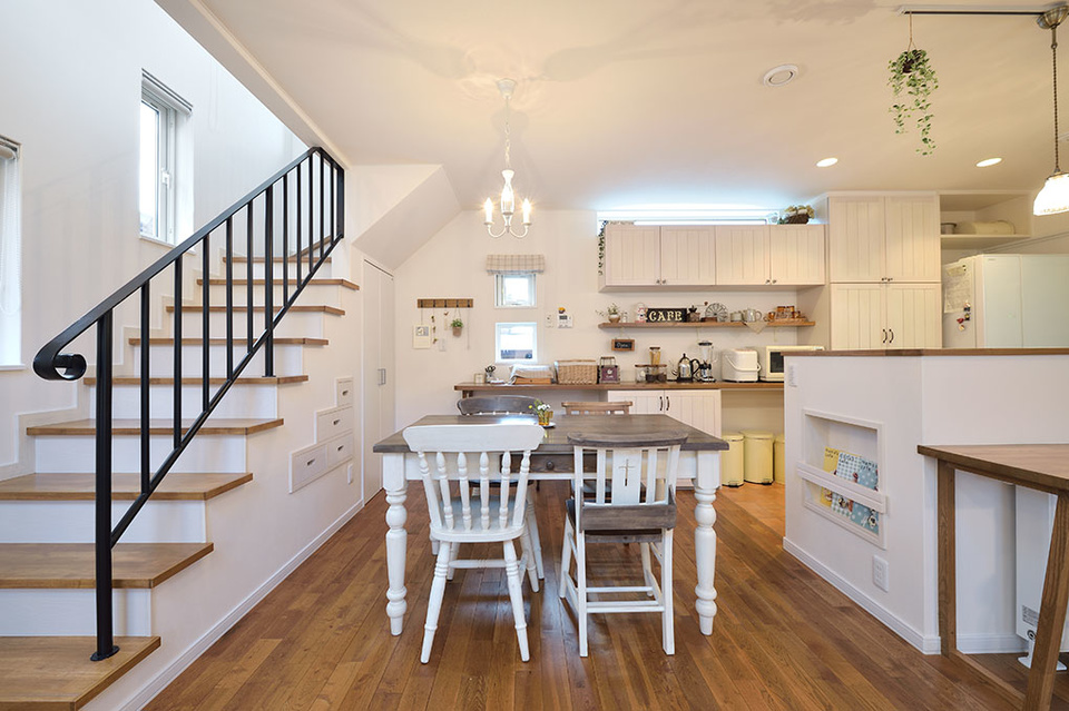 「初めてお会いしたのは経営者などが集まる会合の席。住宅建築を通して家族の絆や幸せを追求していきたいという塚本さんの考え方に共感しました。仕事で事務所にお邪魔すると、スタッフの皆さんがいつも明るく迎えてくれる。家の雰囲気も会社と同じ、あたたかいですね。これなら妻も気に入ってくれると確信しました」。住宅展示場ではいい反応を示さなかった奥様も可愛い小物が並んだ雑貨屋さんみたいな家に心を動かされました。それからは何の迷いもなく、スンナリと打ち合わせが進んだそうです。