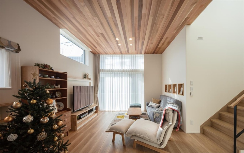 暖かい家にしてほしいというご主人の希望で、窓はすべてトリプルサッシ、ネオマフォーム50㎜の付加断熱で高い断熱性を確保。冬の暖かさはもちろん、遮熱効果で夏も涼しい、1年中快適な高性能住宅です。
