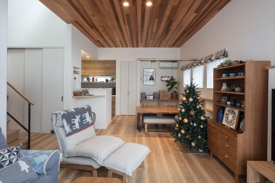 「開放的なリビングにしたいという希望を伝えて何社かにプランをいただきましたが、アシストさんだけが吹き抜けではなく高い天井のプランだったので驚きました。天井を上げるという発想はなかったので。実際に住んでみて、心地よい開放感と暖かさを毎日実感しています」と奥さま。