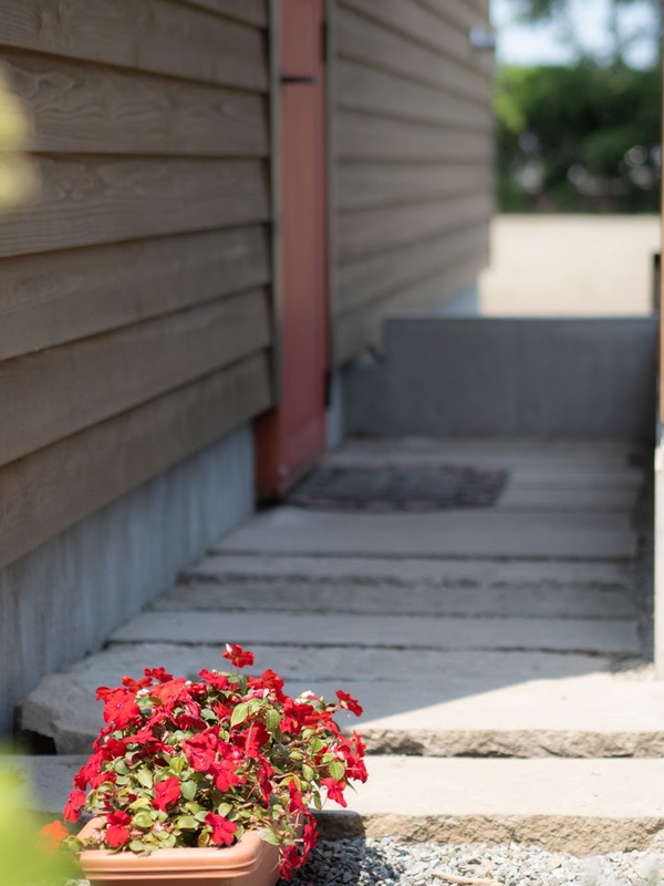 玄関ポーチには札幌軟石を敷き詰めてあります。その下には排気のチューブが通っていて、冬になると換気排熱を利用したロードヒーティングの役目を果たしてくれます。