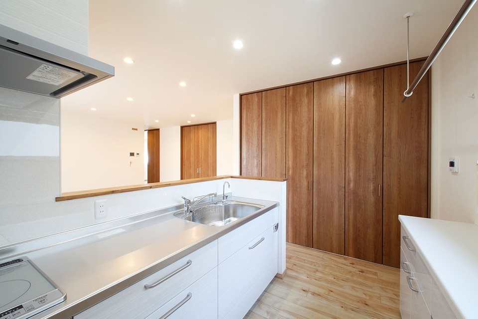 奥様が希望していた対面式キッチンは、周りに通路スペースを確保する必要から部屋が狭くなるので断念しましたが、どこにいても子供の声が聞こえるから安心していられるといいます。