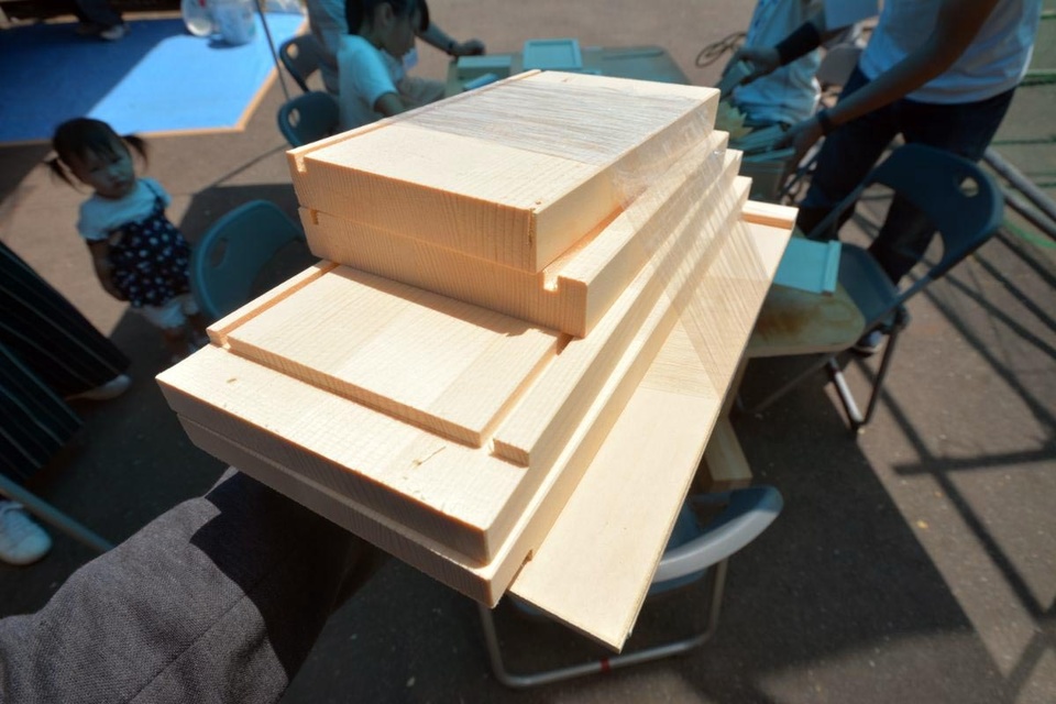 実は、数日前から大工さんたちは、このイベントの準備をしていました。道具箱づくりが数量限定だったのは、こんなに緻密な材料づくりを大工さんがしていたからです。準備していた50セットは完売!皆さん完成品を持ち帰っていました。