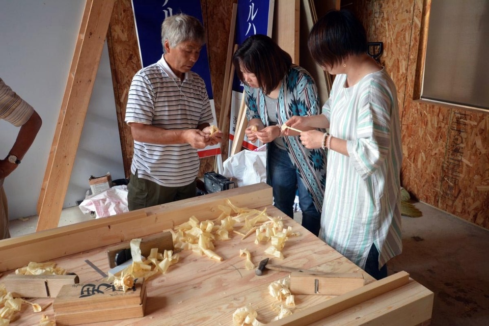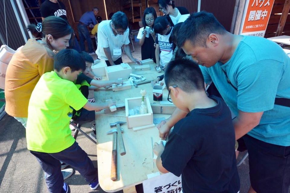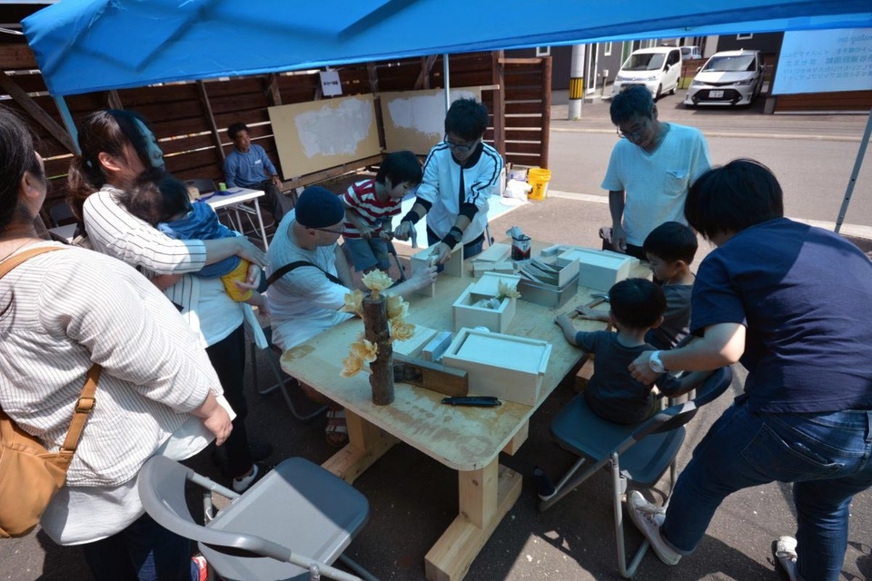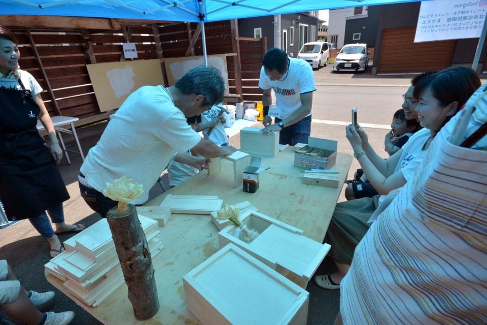 大工さんたちに、道具箱や箸づくり、カンナ削りなどを体験させてもらえるイベントを、函館の工務店・渋谷建設株式会社が2019年7月20、21日の両日開催、多くのファミリーで大盛況となりました。