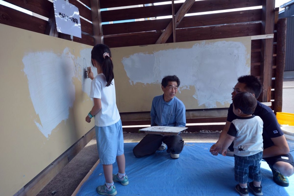 これは珪藻土のかべ塗り体験。お姉ちゃんの後は弟さんも参加してくれました。