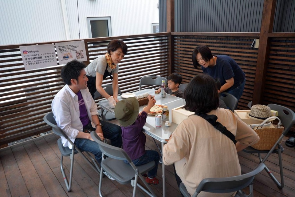 渋谷建設の作業場【石川Base】に続々とお客様が集います。