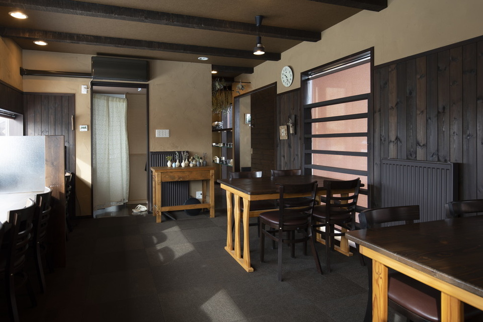 野鳥が訪れる窓辺の席が一番人気!四季折々の自然を感じながら過ごせる空間にしたいというのが、お店づくり・家づくりのポイントでもありました。