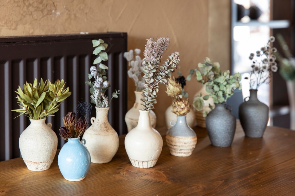 陶芸や花雑貨の体験教室は通年で開催しています。自然が身近に感じられる空間で、大人も子どもも、のびのびとした作品をつくっています。