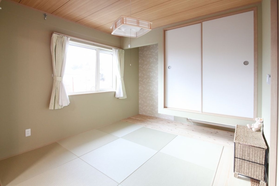 リビングの横には客間があります。最近は客間をリビングと一体化させて小さく、そして洋間にする家が増えていますが、Kさんは和室が大好き。ベッドではなく布団派、お子さんもまだ小さいので、家族全員でここに布団を敷いて寝るのが楽しいそうです。