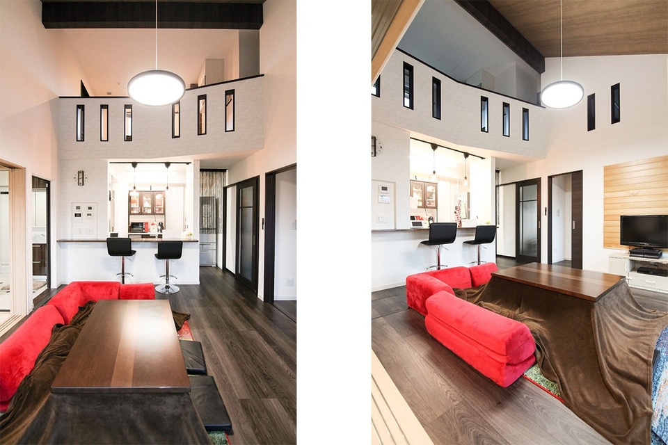 高断熱高気密住宅を建てる前提で、そのうえで冬の室温を20℃設定にすることで暖房消費エネルギーをさらに減らし、本州のように自然に家族がコタツにあつまって団らんできるリビングがいいかなと思ったんです」と話してくれました。