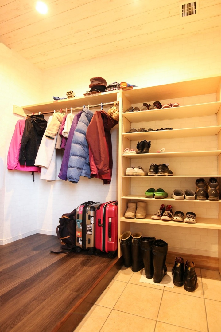 玄関横にはウォークスルークローゼットも設置。アウターや靴、スーツケースなどを収納でき、玄関がすっきりします。