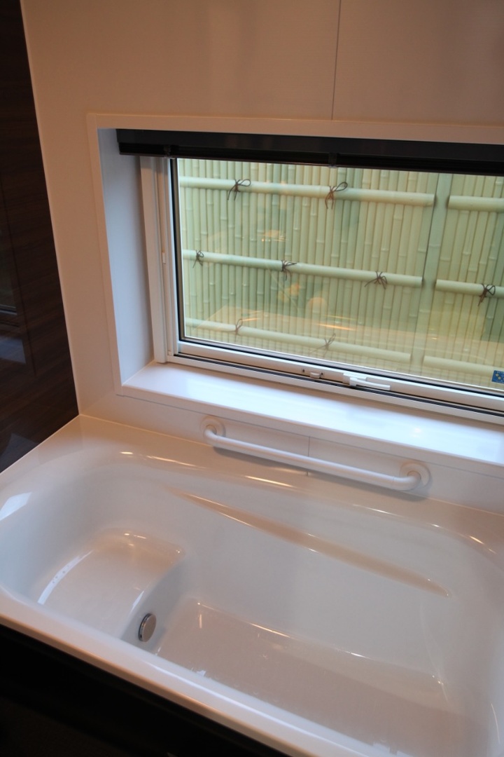 その奥にあるのがバスルームです。ご主人「和風の空間が好きなのでお風呂から坪庭が見えるようにしていただきました」