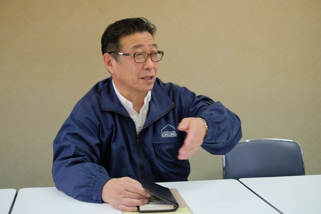 奥野智史社長 創業は父で私は2代目です。50年以上の歴史があることで、ОBのお施主さまからのリフォームのご相談やご紹介もいただいていますし、社歴の長さが信用にもつながっていると感じます。