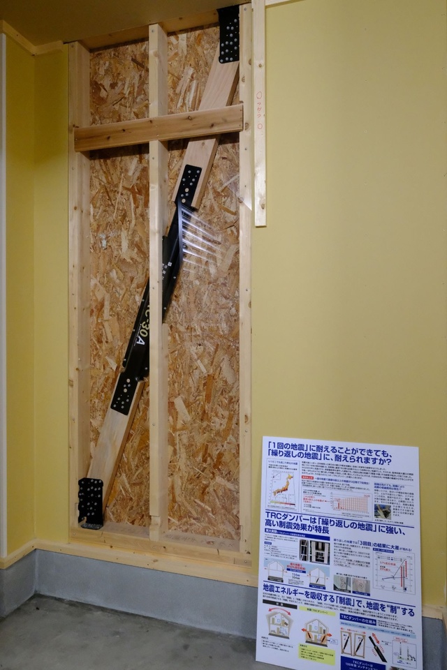 西岡モデルハウスでは地震エネルギーを吸収して揺れを抑える制震ダンパーも採用しました。