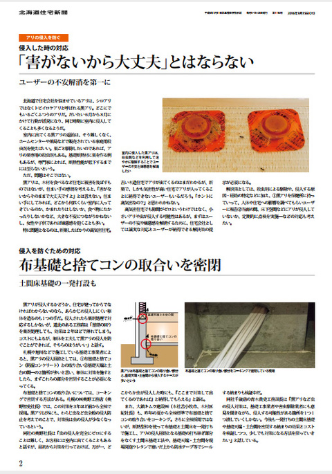 奥野社長には黒アリや小さな虫が侵入しやすい布基礎と捨てコン(防湿コンクリート)との取り合いをコーキングで密閉する対策を全棟で実施しているので虫の侵入はかなり防げる