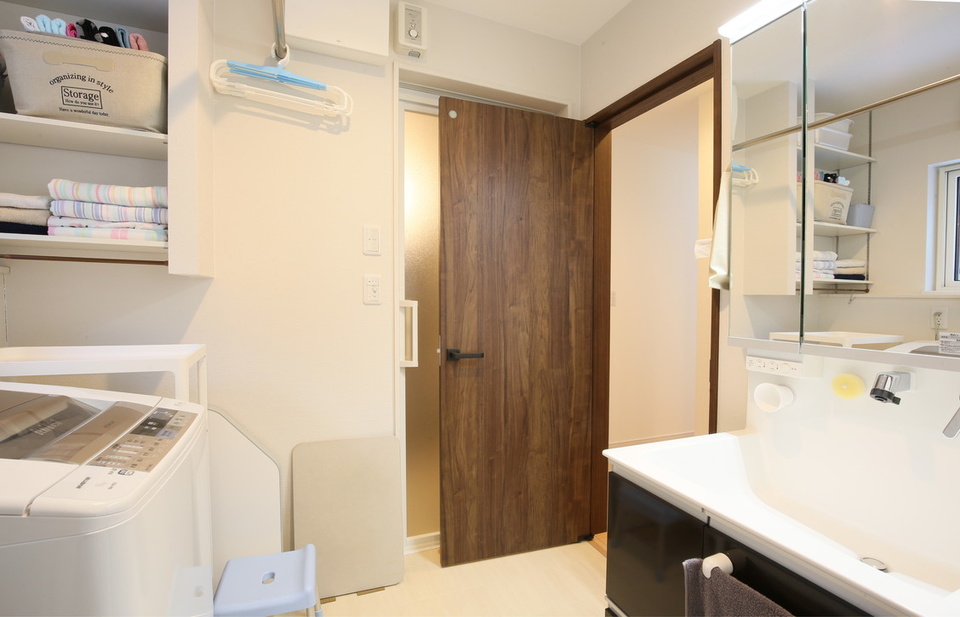 ユーティリティーは、玄関から続く廊下と、キッチン横に出入り口がある回遊式。帰宅後の手洗いがしやすく、お子さんのお風呂のお世話などもしやすい造りです。台所仕事をしながらの洗濯など、家事にも便利な動線になっています。