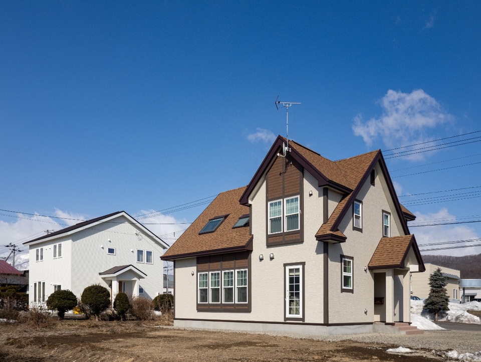 赤坂建設はアメリカ・カナダの家づくりを学び、十勝にツーバイフォー工法を導入したパイオニアです。住宅の断熱・気密性能に加え、洋風のデザインも得意です。格子の窓も大変似合う家を建てます。