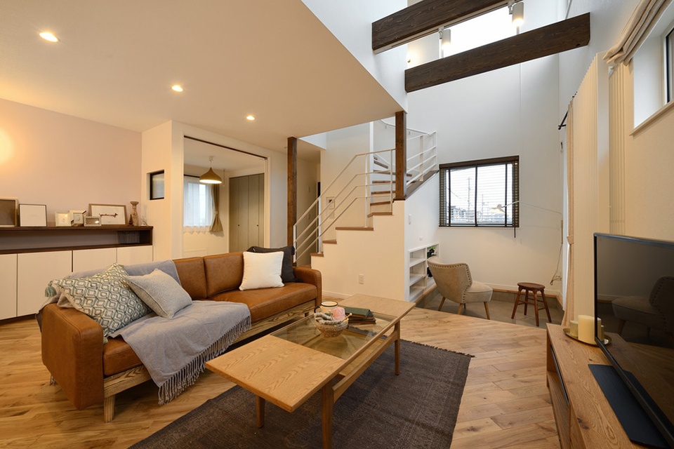 リビングの吹抜は明るく伸びやかな空間をつくり、上下階でも家族が互いの気配を感じられるのも魅力です。