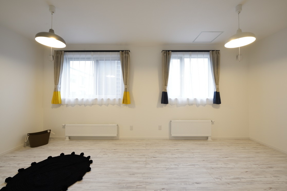2階子ども部屋は将来2部屋に仕切ることもできます。あえて収納などを設けず、広さを確保。