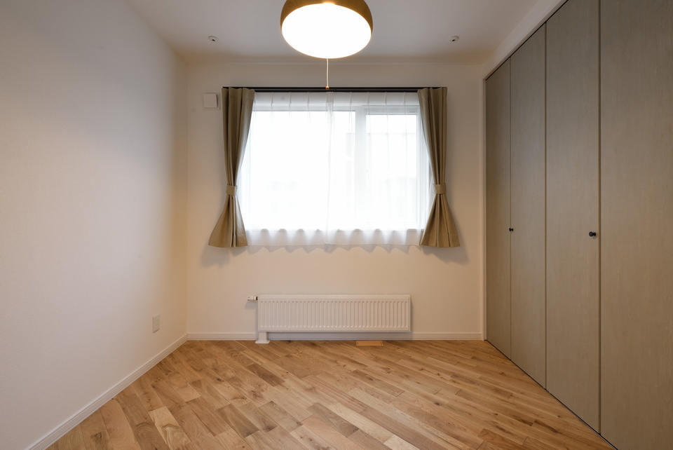 リビング続きの洋室は、子どものプレイルームや来客用の客室として使うことを想定しています。子どものおもちゃや着替え、客用布団なども収まる大容量の収納も完備しています。