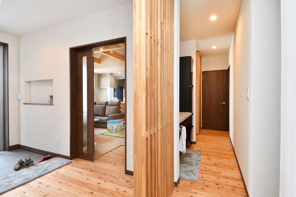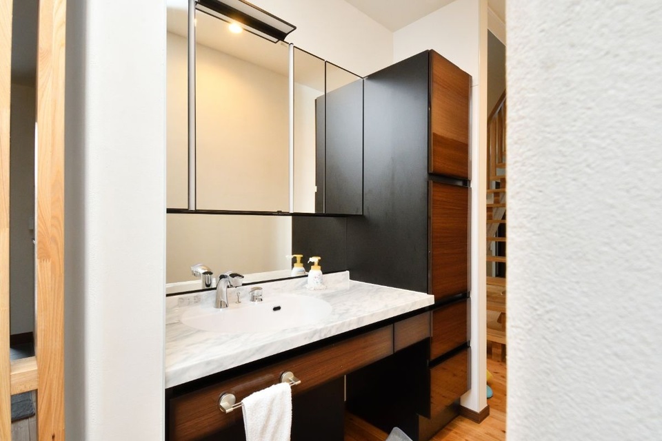 LDKを通らずに洗面台やお風呂に直行できるようにしました。