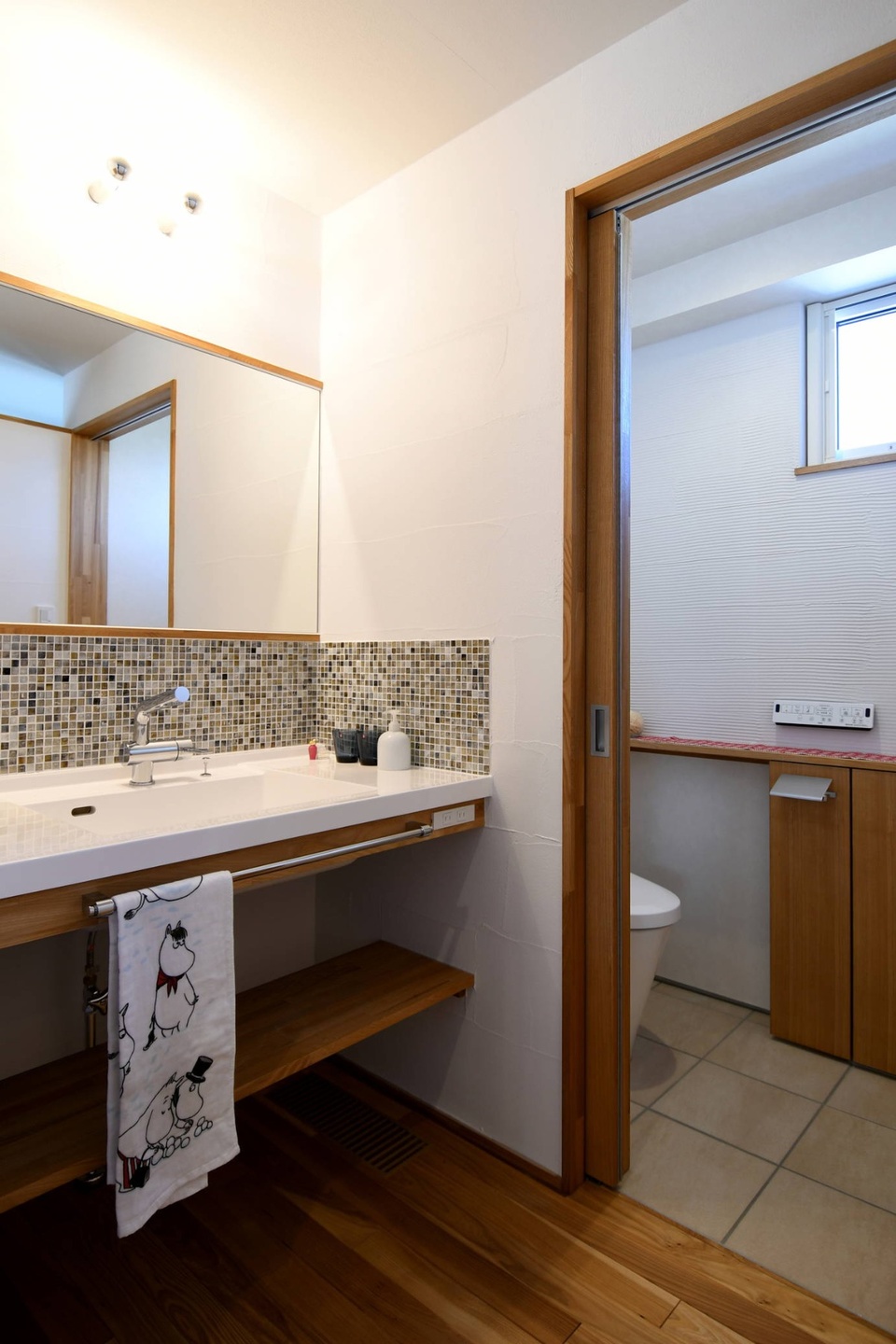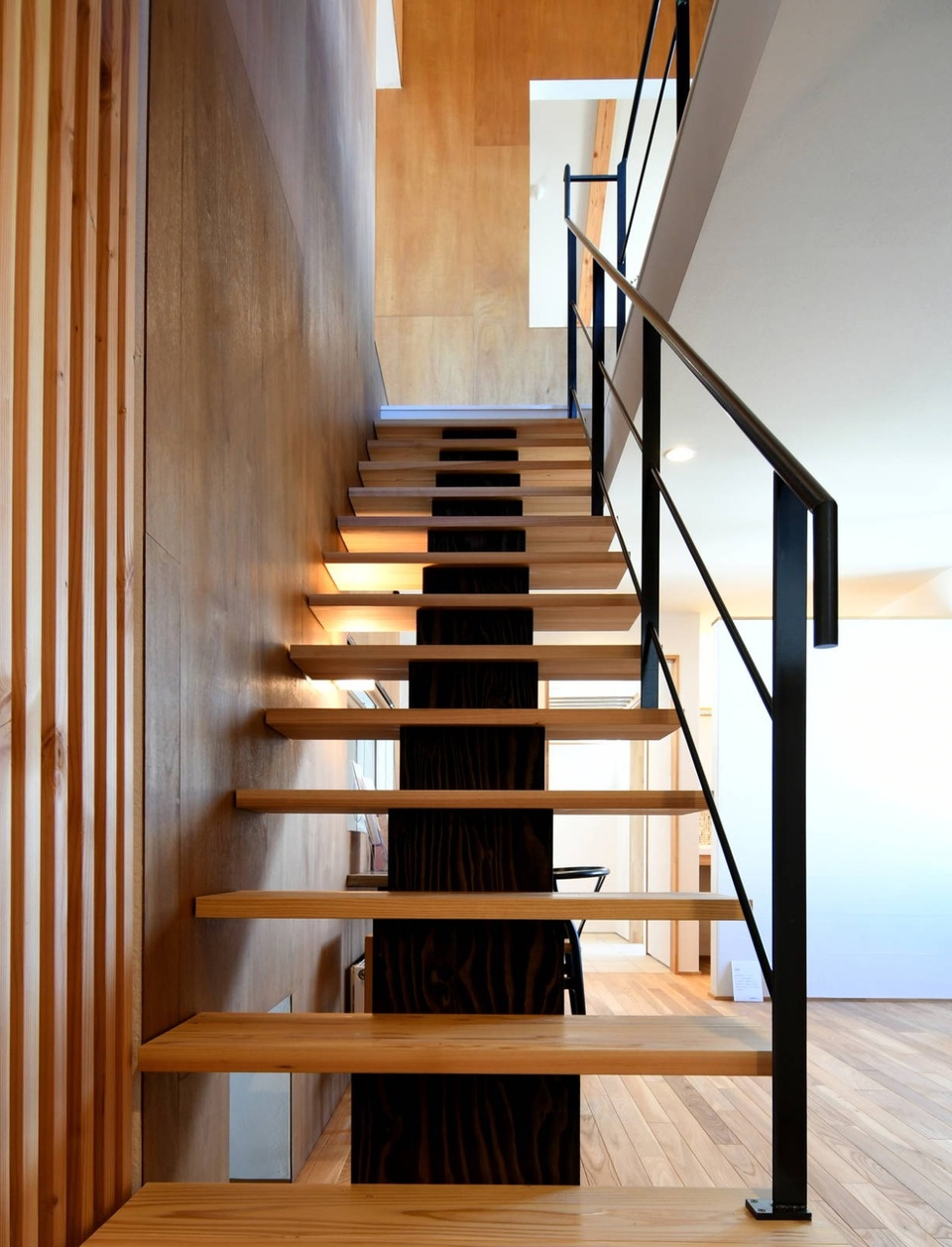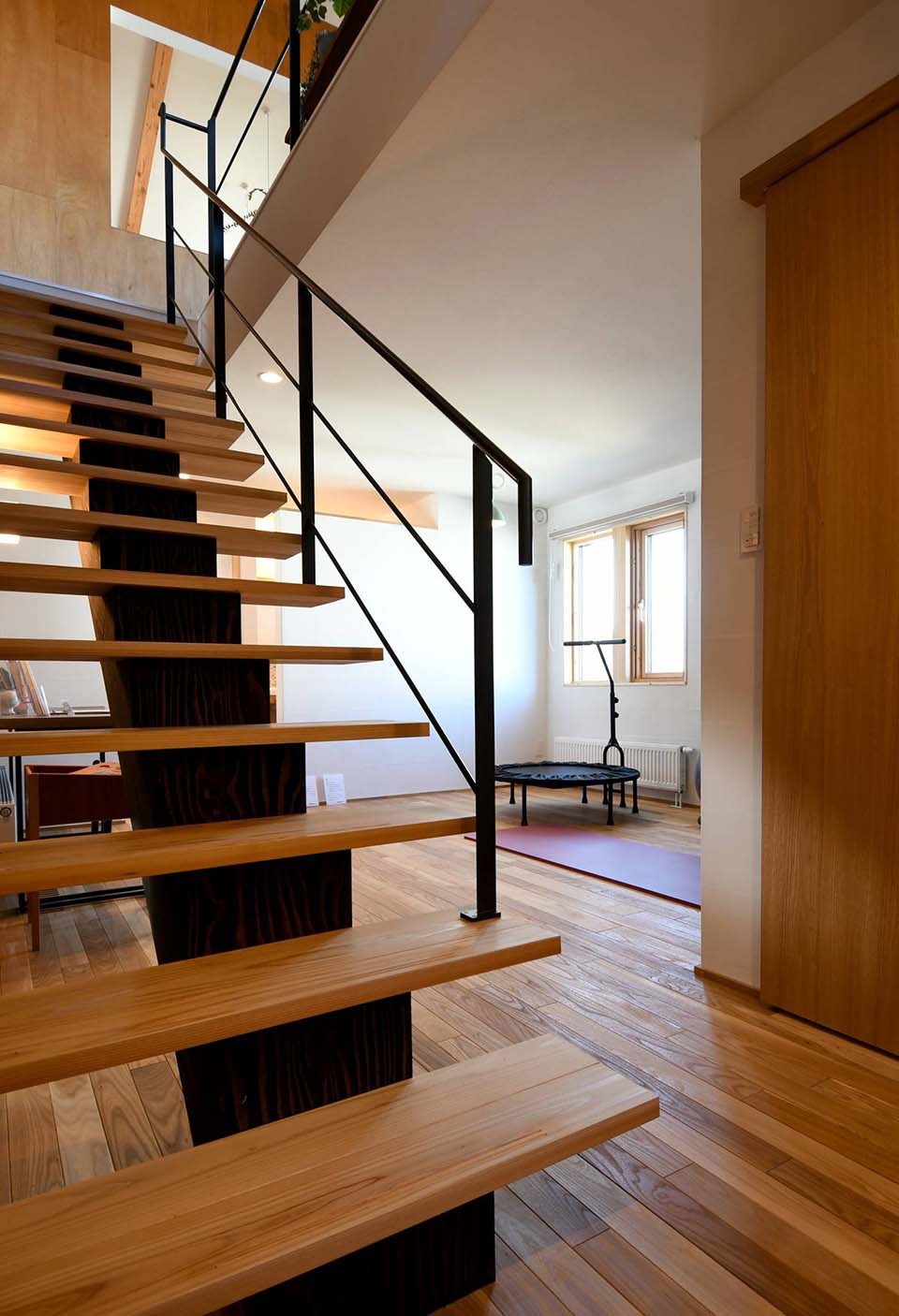 フローリングは1階にニレ、2階に道産ナラ材を使用し、見比べることができるようになっています。