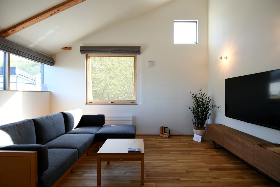 「SUN-GAKU」と名づけられたこのモデルハウス。SUNは三角、山、太陽を、GAKUは学、楽、画を意味するそうです。