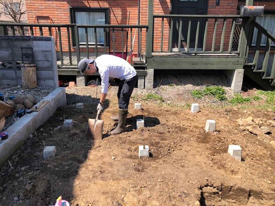 GW休みに入ったDIY初日。ちょうど新型コロナウイルス感染拡大で“ステイホーム”が言われていた頃です。基礎はシノザキ建築事務所の大工さんに依頼しました。