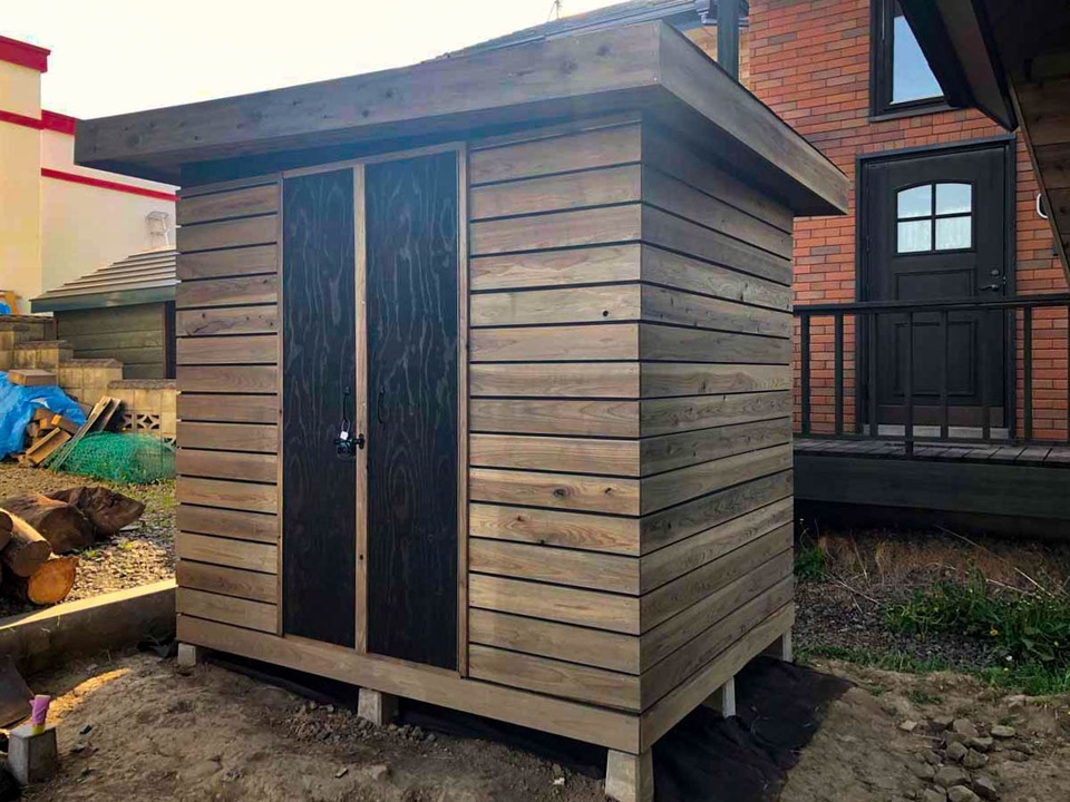 これまでも、オーナーさんから「庭に小屋を建てたい」「家に合う物置が見つからない」といった相談を受けていたというシノザキさん。木の外装をふんだんに使った住まいと調和した手作りエクステリアは人気を呼びそうです。