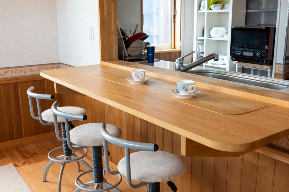 Hさん 腰壁に無垢材を使ってもらうというのは見積もりには入ってなかったんですけど、小野社長が頑張ってくれて…。赤字だったんじゃないかと心配しましたが、室内の雰囲気が良くて気に入っています。