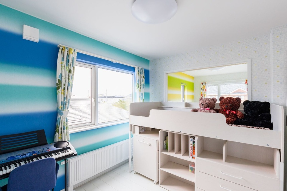 2階は寝室と子ども部屋です。子ども部屋は、現在はベッドで軽く仕切ったセミオープンな空間になっています。