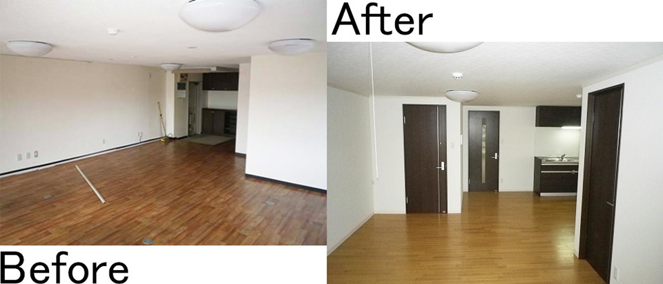 マンションのワンフロア事務所を1LDKの住居にリフォーム/札幌市中央区